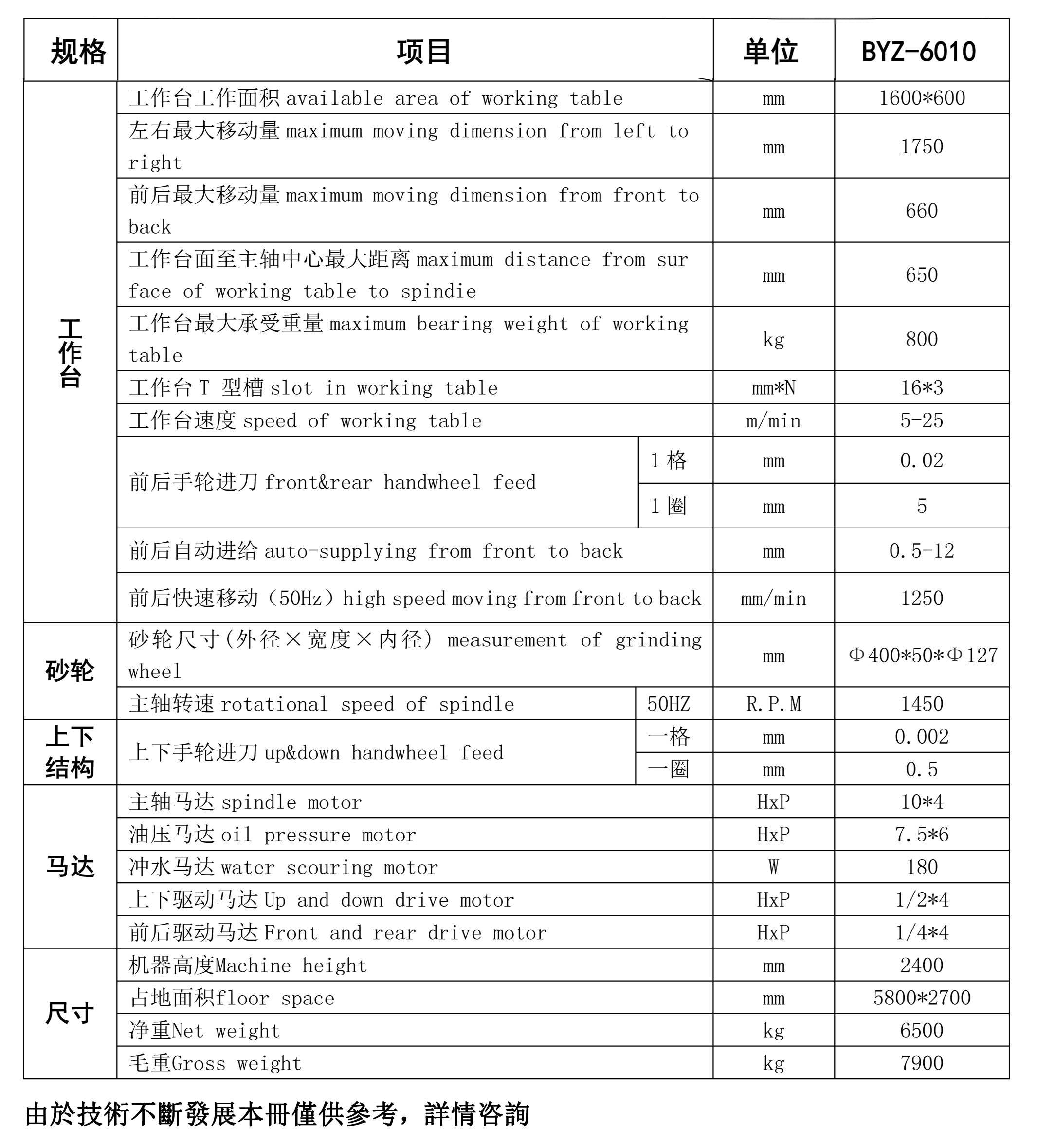 6、BYZ-6016自動磨床前后馬達(dá)由專業(yè)獨立馬達(dá)控制,有效提高機床效率,和不必要的故障率。
